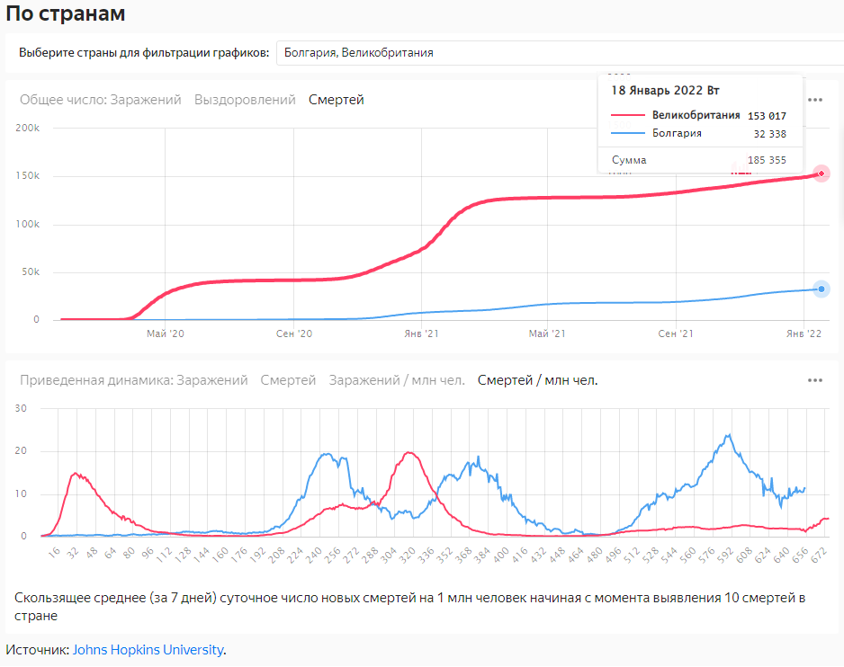 И по смертям тоже глянем, всё-таки общая летальность в Болгарии выше в 3 раза (а не в 10 раз!):