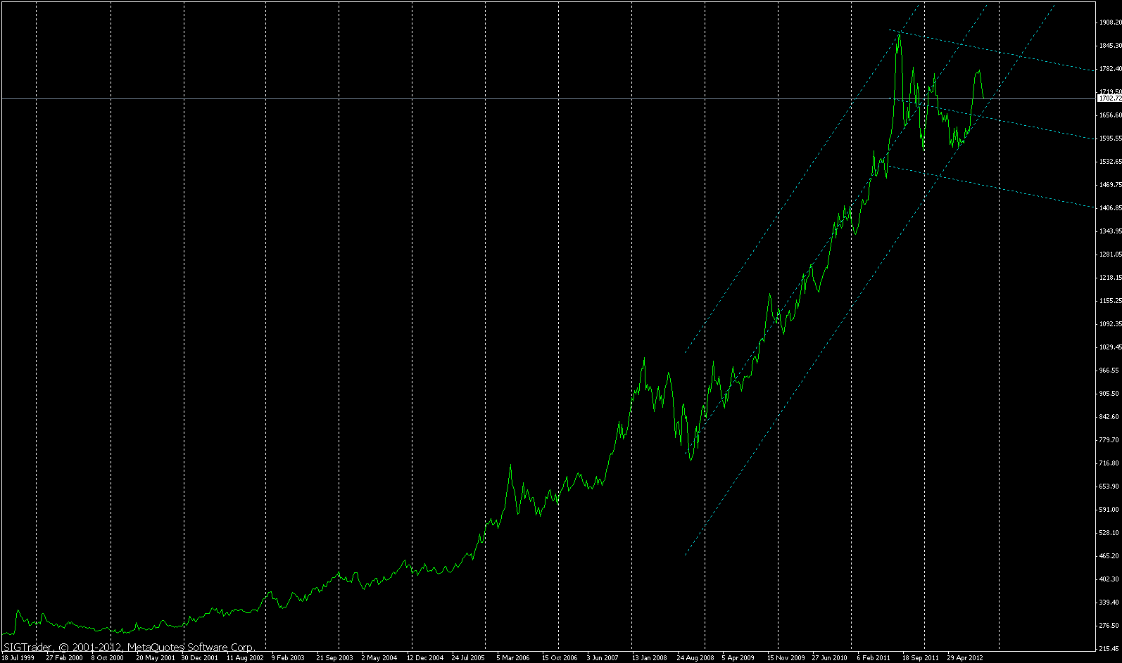 С конца 2008 по середину 2011 изменение цены доллара (золота) достаточно точно экстраполировались прямой.