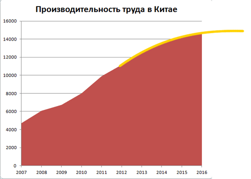 Но вывод-то какой? Китаю ещё есть куда расти, верно? Интересно взглянуть на динамику этой производительности? Вот она: