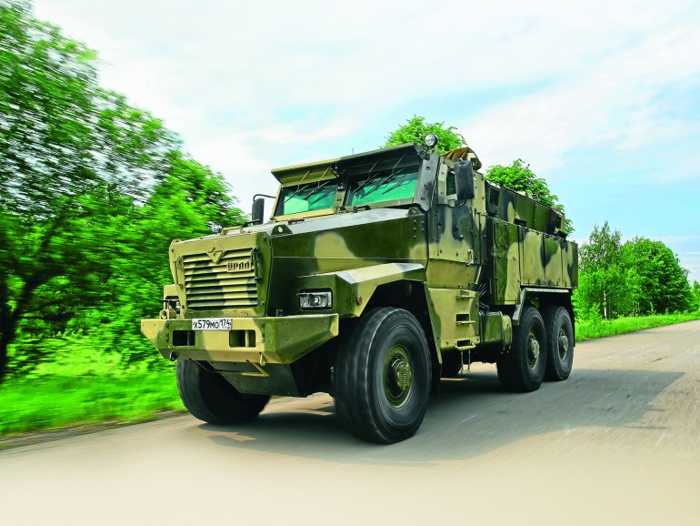 Автомобили проекта «Тайфун» – совершенно новый вид вооружения для нашей армии. Их задача – перевозить бойцов и грузы в условиях, когда нет четкой линии фронта. Эти бронеавтомобили обязаны ехать далеко и быстро по обычным шоссе и по бездорожью. Заказ на производство размещен на КАМАЗе и УралАЗе, а опытные образцы, построенные на этих заводах, уже проходят испытания в войсках. Капотник из Миасса нарекли «Тайфуном-У», бескапотник из Набережных Челнов получил имя «Тайфун-К».
