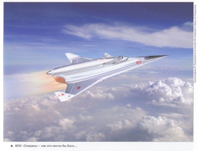 Конечно, для красоты. Причём не совсем по теме. Я долго вспоминал, где я видел похожую картинку. В конце концов открыл книжку про космос и нашёл её там. Точнее не её, но похожую. Но аппарат тот же. Это "Спираль"! В конечном варианте она должна была запускаться с самолёта: