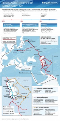 Предполагается путь альтернативный Суэцкому каналу, более короткий через территорию Ирана, Азербайджана и России. Срок доставки грузов по сухопутному участку от порта Бендер-Абас (Иран) до Москвы и Питера около 3 суток! Из Мумбаи (Индия) с морским участком до 14 суток. По Суэцкому каналу он составляет около 40 суток, причем за проход через канал платят приличные деньги.