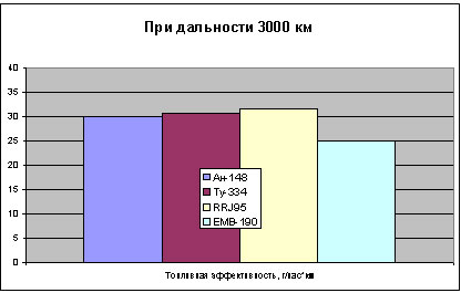 Расчеты показывают, что топливная эффективность Ан-148, Ту-334 и Sukhoi Superjet 100 при перевозке 80 пассажиров практически одинаковы и составляют около 30 г/пасс.км. EMB-190 обладает при этом на 15% лучшей топливной эффективностью. При перевозке на дальность 3000 км соответствующего количества пассажиров Ан-148 имеет топливную эффективность 29 г/пасс.км, Ту-334 - 30 г/пасс.км и Superjet 100 - 32 г/пасс.км EMB-190 и в этом случае на 20 % лучше!